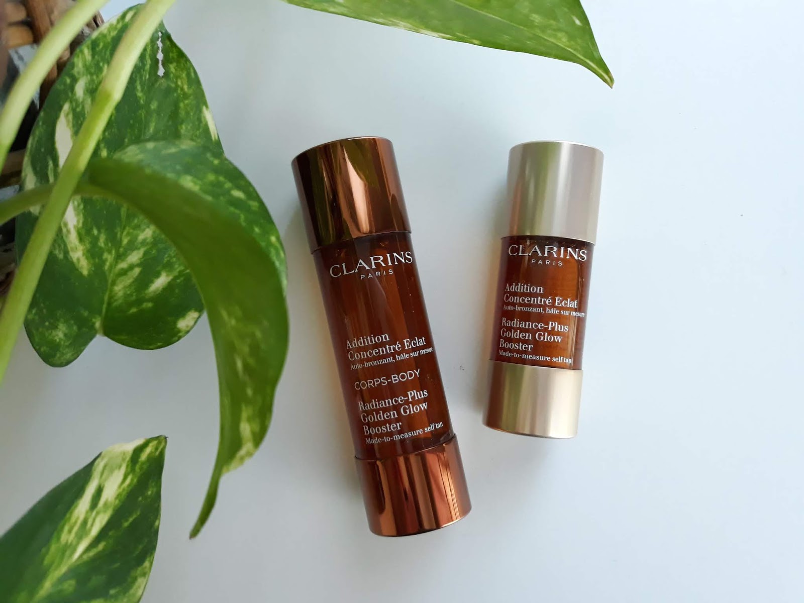 Olen aina pelännyt varsinaisia itseruskettavia niiden intensiivisyyden takia, sillä innostuinkin ajatuksesta kokeilla Clarinsin Radiance Plus Golden Glow Booster*-tippoja, jotka sekoitetaan oman ihovoiteen sekaan. Tippojen määrää voi itse säädellä ja mikä parasta, voit käyttää tippojen kanssa juuri sellaista voidetta, joka sinun ihotyypillesi sopii. Oma ihoni onkin siis ollut enemmän kuin tyytyväinen, kun olen voinut sekoittaa nämä paksun vartalo- tai kasvovoiteen sekaan.